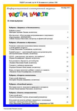 Предлагаем вашему вниманию Электронный информационный журнал «Растём вместе».